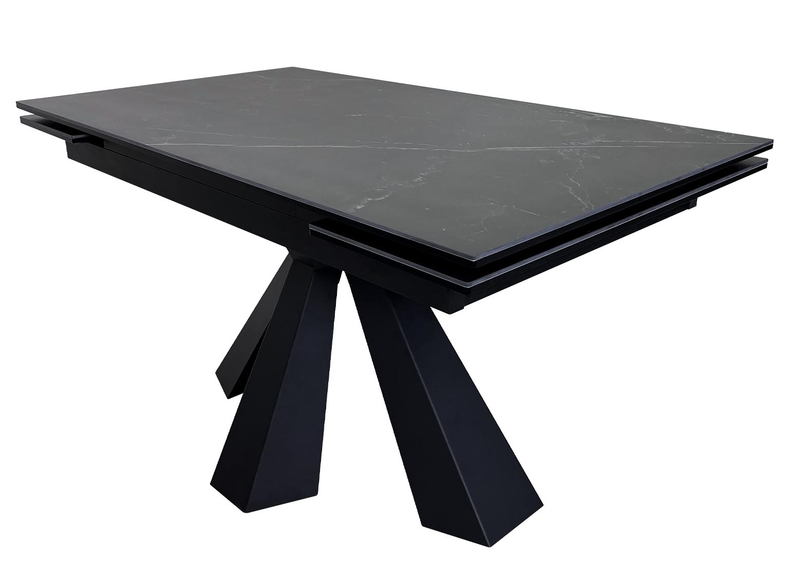 Стол Саен 39 раздвижной 140 x 80 (+30 +30) см / Острые углы / Керамика чёрная / Опора Чёрная